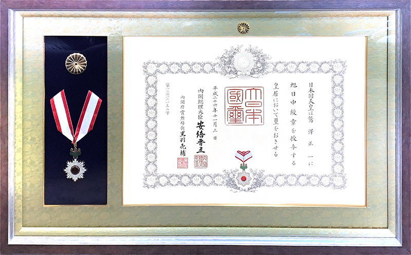 2014年(平成26年)に旭日中綬章受章。